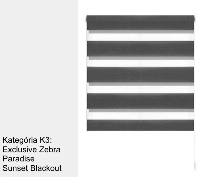 ŠPECIFIKÁCIA LÁTOK EXCLUSIVE ZEBRA, PARADISE, SUNSET BLACKOUT: