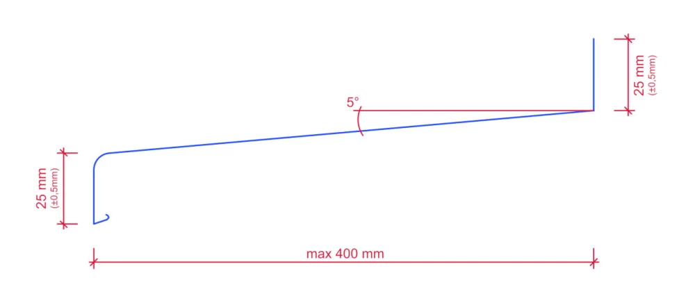 Hliníkové extrudované parapety sú dostupné v šírkach od 110 mm do 400 mm a v maximálnej dĺžke 6000 mm.